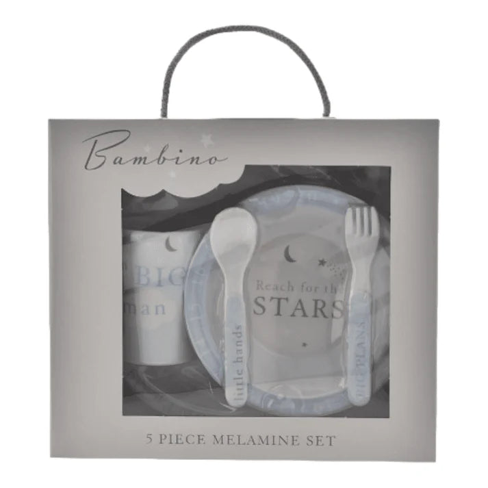 The Bambino 5 Piece Melamine Set in Blue includes: