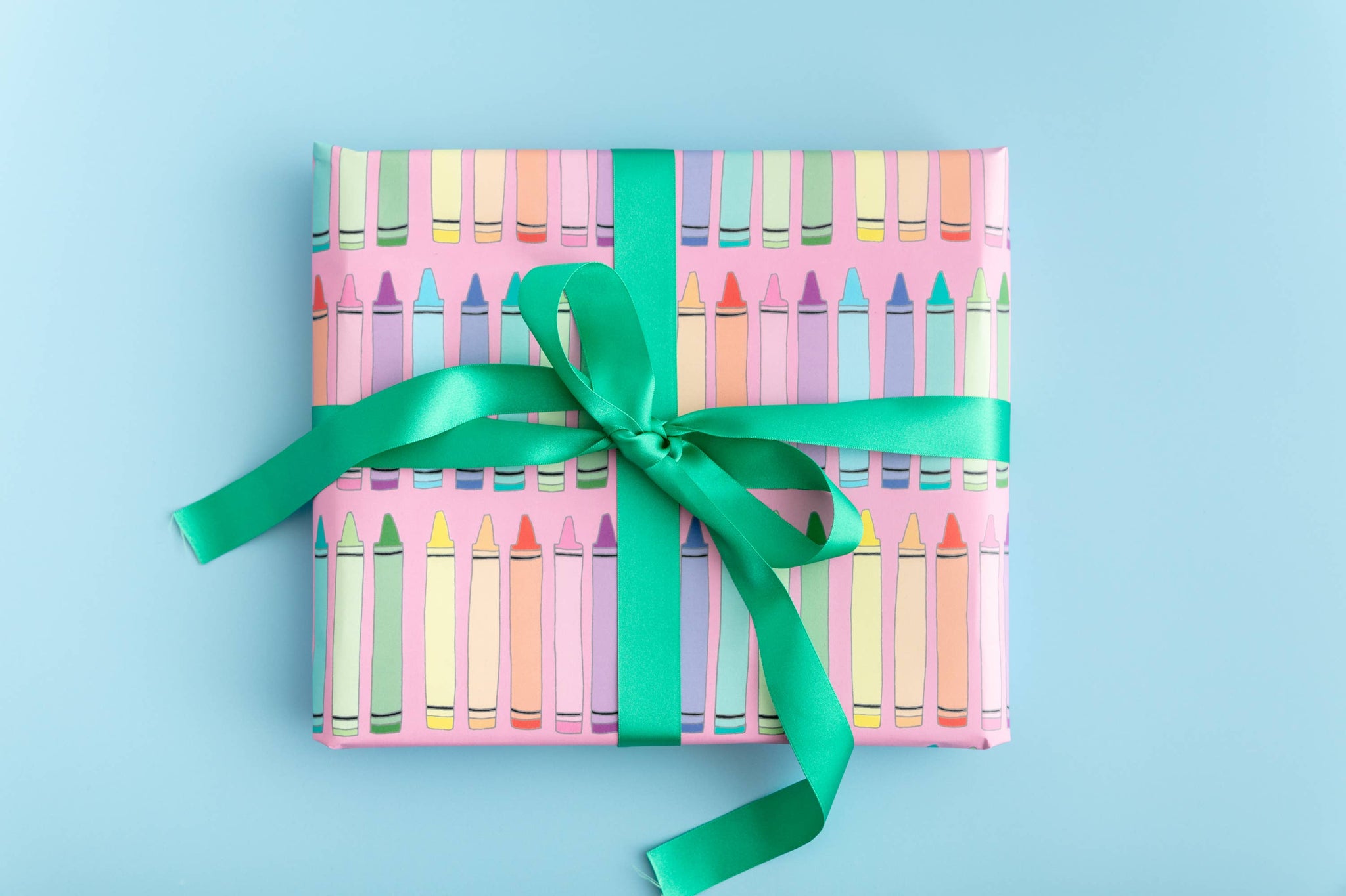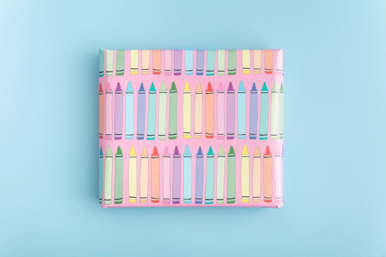 Hand drawn and printed in the UK - Crayon Gift Wrap | Wrapping Paper | Baby Shower Gift Wrap